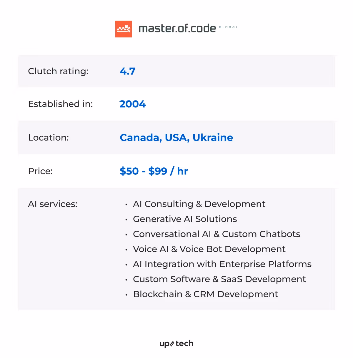 Master of Code Global (MOCG) is a leading AI development partner with 20+ years of experience and a portfolio of more than 1,000 delivered projects. Their solutions power growth for global names such as Tom Ford, Electronic Arts, T-Mobile, Golden State Warriors, Burberry, and Dr. Oetker, driving real business impact including 15x revenue boosts, 3x higher conversion rates, and up to 80% better customer satisfaction.