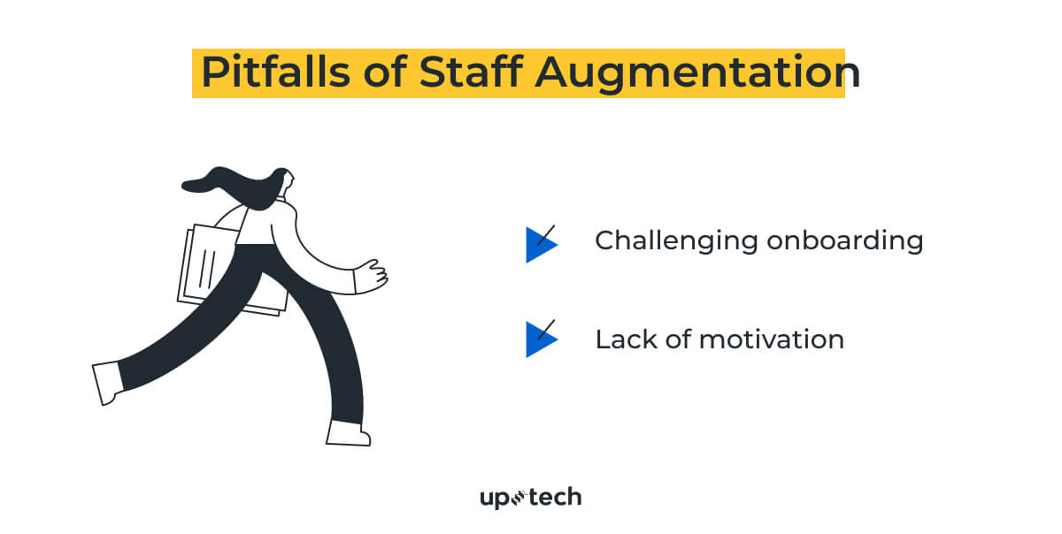 Working on an augmented team may be challenging for members to find motivation. Employed members can count on specific bonuses from their company – salary raises, social benefits, or bonus payment. In this sense, the augmented team can feel somewhat left out.