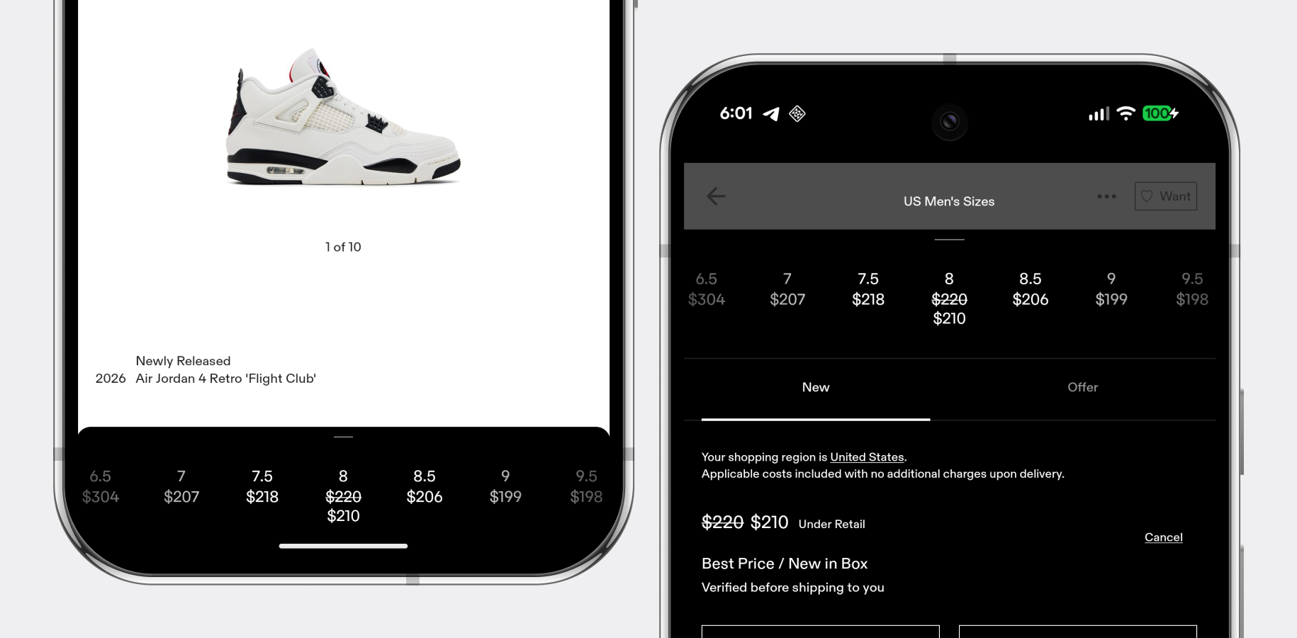 The Offer Flow allows users to place, update, or withdraw price offers on products. Together with the GOAT team, we implemented custom logic and UI components to support flexible pricing rules, frequent design updates, and experiments without breaking the core purchase flow.