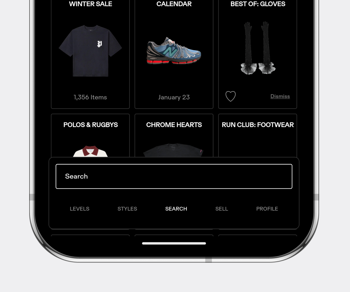 The Search tab helps users find products across a large catalog with multiple filters and sorting options. The feature relies on GOAT’s internal search logic and supports experiments through A/B tests to improve product discovery and result accuracy.