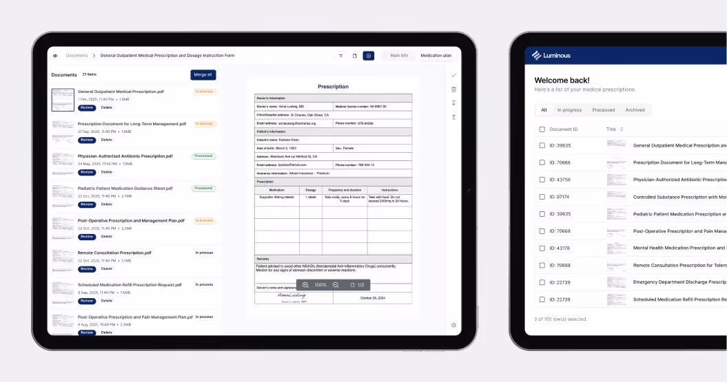 An AI system that decodes handwritten and digital prescriptions with 90% accuracy to automate medication plans and reduce manual work.